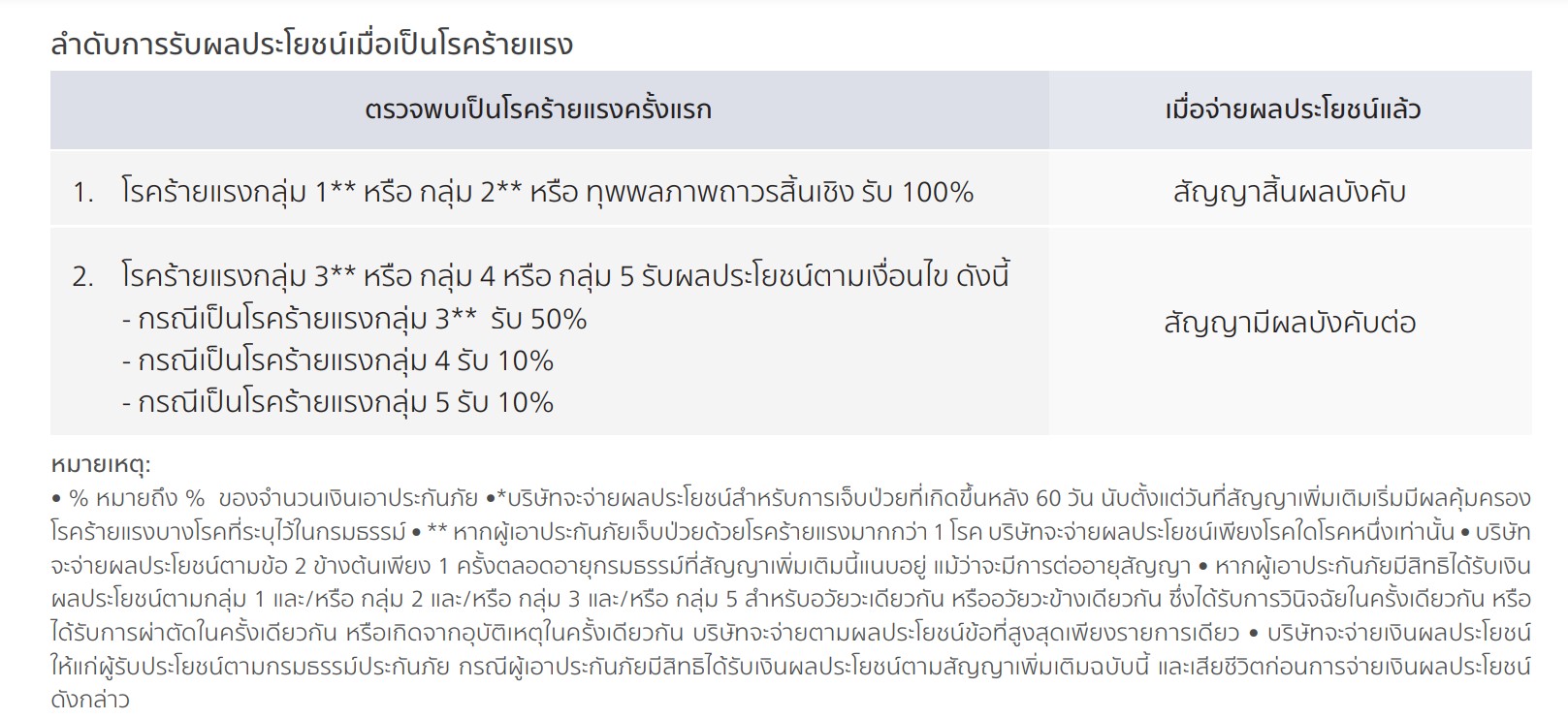 - สัญญาเพิ่มเติมนี้ต้องซื้อแนบกับสัญญาหลักตามที่บริษัทกำหนด